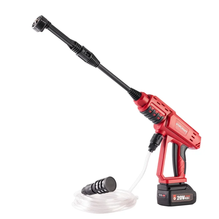 Aparat de spălat cu presiune fără fir Worcraft CPC-S20LiDM – 24 bari, 5,4 l/min, acumulator 20V ONE FOR ALL, 6 jeturi reglabile, auto-aspirație, ideal pentru spălat auto și curățenie exterioară.