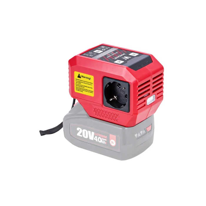 Invertorul portabil Worcraft CPI-S20Li-200W transformă energia din acumulatorii 20V ONE FOR ALL în curent alternativ 220V / 200W, oferind alimentare pentru dispozitive mici oriunde ai nevoie — pe teren, în camping sau ca sursă de urgență la căderi de curent. Pur și simplu montezi un acumulator Worcraft 20V și ai priză 220V la dispoziție.