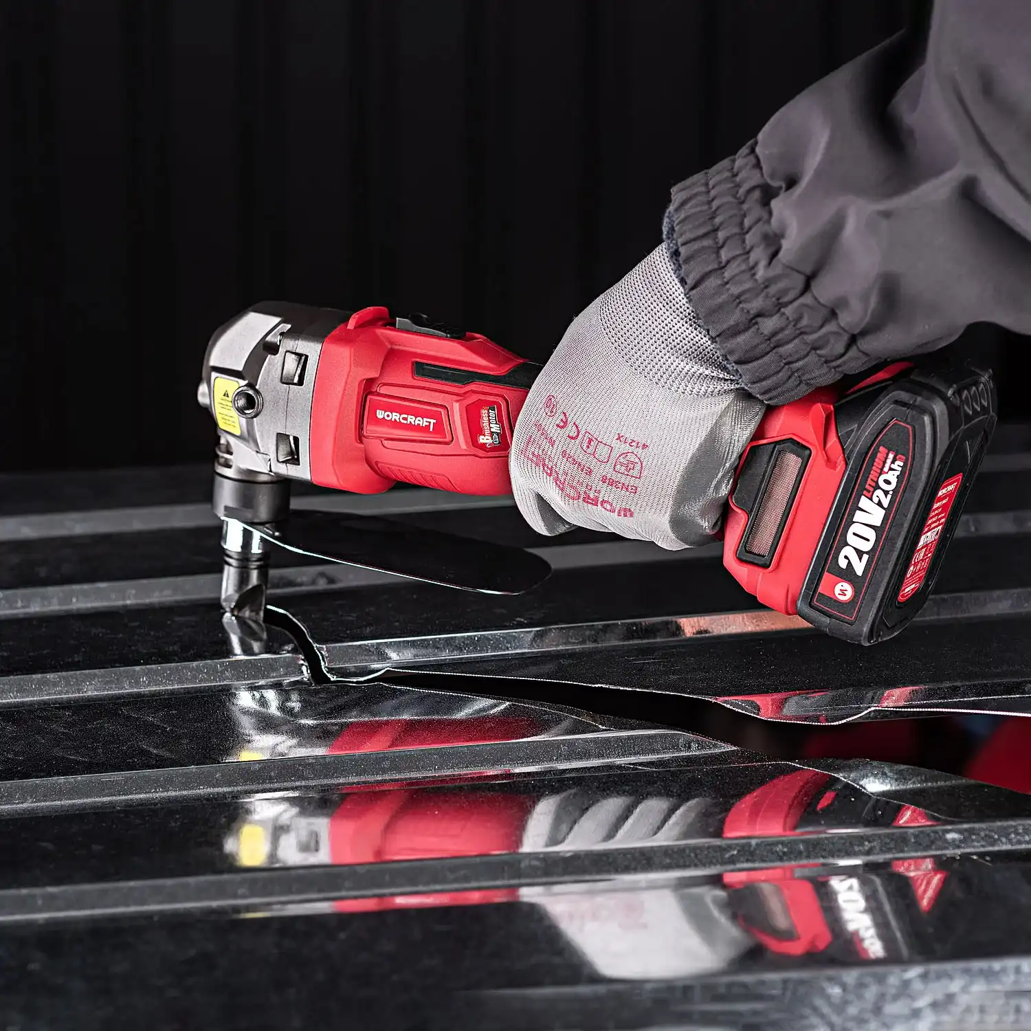 Worcraft CHMN-S20LiB este o foarfecă electrică pentru tablă pe acumulator 20V ONE FOR ALL, cu motor brushless și capacitate de tăiere de până la 2,5 mm în oțel. Taie table din oțel, inox, aluminiu, tablă zincată și ondulată fără a deforma materialul – avantajul principal față de polizorul unghiular care supraîncălzește marginile.
